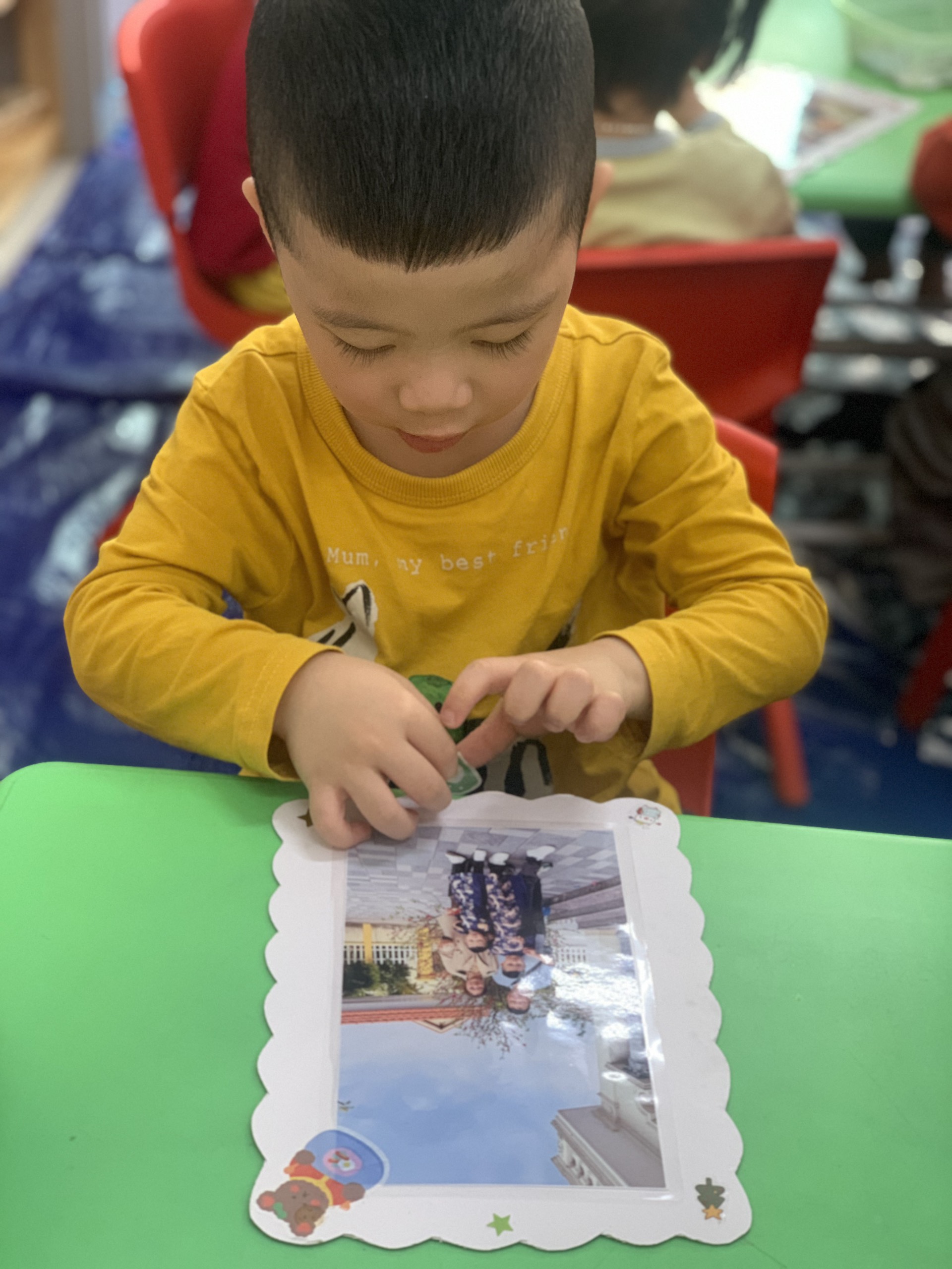 Ngày Quốc tế phụ nữ 8/3, ngày để tri ân đến bà, mẹ, cô giáo và các bạn gái. Trong ngày này với biết bao hoạt động như: tặng hoa, tặng quà , tặng những lời chúc thân yêu gửi đến bà, mẹ với mong muốn ngày 8/3 ai ai cũng khỏe mạnh, hạnh phúc, xinh tươi trẻ mãi. Để giúp các bé lớp mẫu giáo bé C1 trường Mầm non Yên Thường bày tỏ được tình cảm của mình với bà và mẹ, các cô giáo ở lớp đã chuẩn bị thật nhiều các ticker ngộ nghĩnh đáng yêu và tổ chức cho tất cả các bé tự tay mình trang trí những khung ảnh thật xinh xắn. Được cô giáo hướng dẫn cụ thể cách làm, bé nào cũng hứng thú, say sưa, sáng tạo ra những khung ảnh thật đẹp. Sau đó các bé cùng nhau chia sẻ với các bạn về khung ảnh các bé làm ra với niềm vui và sự thích thú. Các bé mong chờ đến chiều để mang về tặng bà, tặng mẹ những chiếc khung ảnh chứa đựng những tình cảm chân thành mà các bé dành cho bà và mẹ của mình.