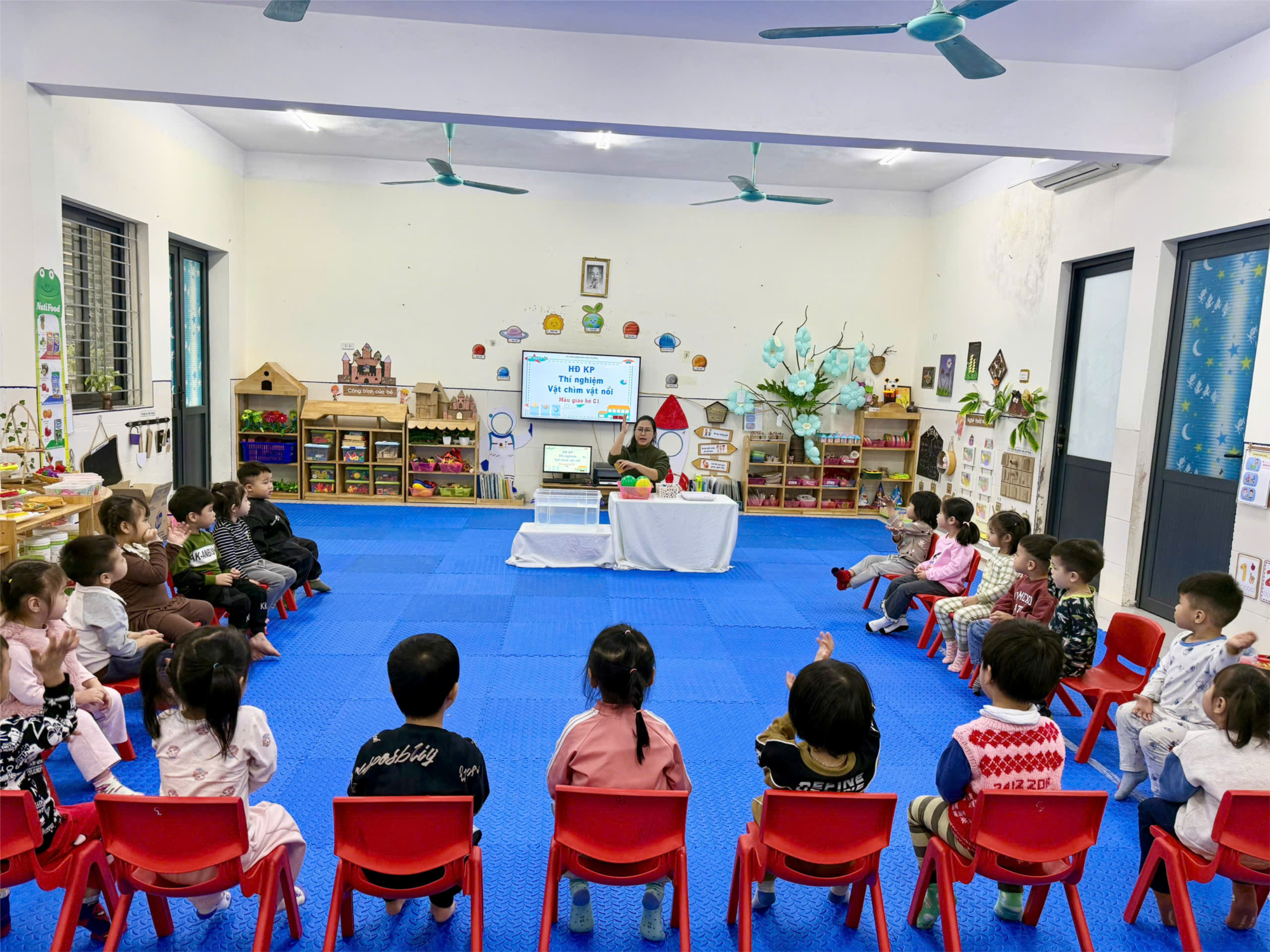 Không khí lớp học tràn ngập sự ngạc nhiên, thích thú khi các bé đưa ra dự đoán, quan sát kết quả và chia sẻ suy nghĩ của mình. Đây chính là những bước đầu giúp trẻ hình thành tư duy khoa học, biết đưa ra giả thuyết, kiểm chứng và rút ra kết luận từ trải nghiệm thực tế.