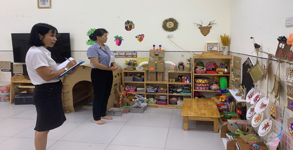 Tham gia hưởng ứng phong trào hội thi trang trí lớp học mầm non sôi nổi, đạt hiệu quả cao trong công tác trang trí môi trường lớp học, có đầy đủ các góc hoạt động, và được trang trí tạo môi trường theo hướng mở lấy trẻ làm trung tâm, các góc chơi có nhiều đồ dùng đồ chơi mầm non tự tạo, đa dạng về kiểu dáng, mầu sắc, chất liệu. Đặc biệt năm học này một trong những điều đáng chú ý là trang trí môi trường lớp học ứng dụng phương pháp Montessori giúp trẻ có thể thoải mái hoạt động tự tay lấy, tháo lắp đồ dùng trên các góc chơi. Thứ 2 là ứng dụng phương pháp Steam vào trang trí lớp học từ nguyên vật liệu tái chế.