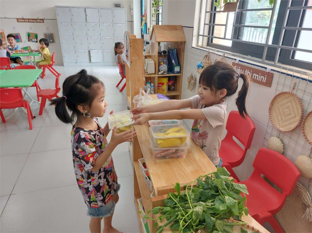 * Hoạt động góc: Là hoạt động mà trẻ được phát huy hết khả năng tự lập của mình với hoạt động này giáo viên khuyển khích, động viên trẻ tự lựa chọn vai chơi, góc chơi, tự lấy đồ dùng và sử dụng đồ dùng, đồ chơi phù hợp với vai chơi và trò chơi của mình. Trẻ tự giao tiếp, giao lưu với bạn bè, được thể hiện vai chơi, được bắt chước những công việc của người lớn, tự mình tạo ra các sản phẩm theo ý thích… được quan tâm, giúp đỡ bạn bè, chơi cùng bạn, đoàn kết với bạn. Trong khi trẻ chơi giáo viên tuyệt đối không can thiệp sâu, hay áp đặt vào quá trình chơi của trẻ. Giáo viên tạo tình huống để trẻ tự giải quyết vấn đề, trẻ tự chơi, tự khám phá, tự tìm hiểu và giáo viên chỉ giúp đỡ trẻ khi thật cần thiết. Khi trẻ chơi xong trẻ tự cất dọn đồ dùng, đồ chơi gọn gàng đúng nơi quy định.
