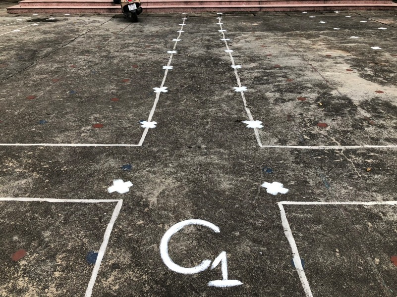 Trường MN Yên Thường đã chuẩn bị kẻ vẽ sơ đồ, địa điểm để đón trả trẻ, đảm bảo giãn cách và không để ùn tắc giao thông tại khu vực trong và ngoài cổng trường.